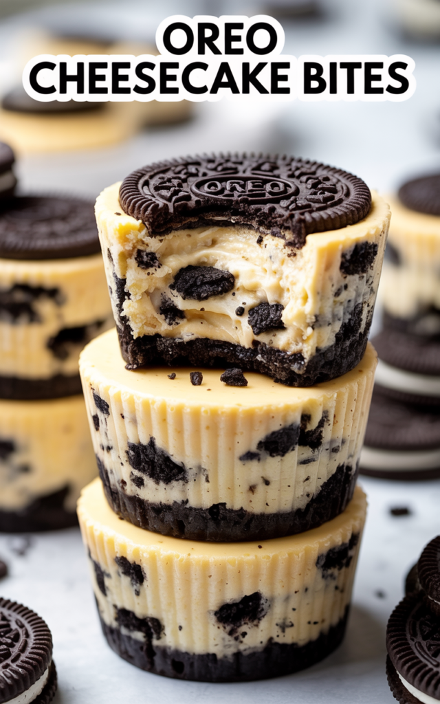 What sets these cheesecake bites apart is their irresistible combination of velvety cheesecake and deep, chocolatey Oreo crust—plus the surprise mini Oreo on the bottom! Each bite is the perfect balance of sweetness and tang, with a texture that’s equal parts creamy and crunchy. They come together quickly, making them a go-to for busy bakers seeking maximum reward with minimal effort.