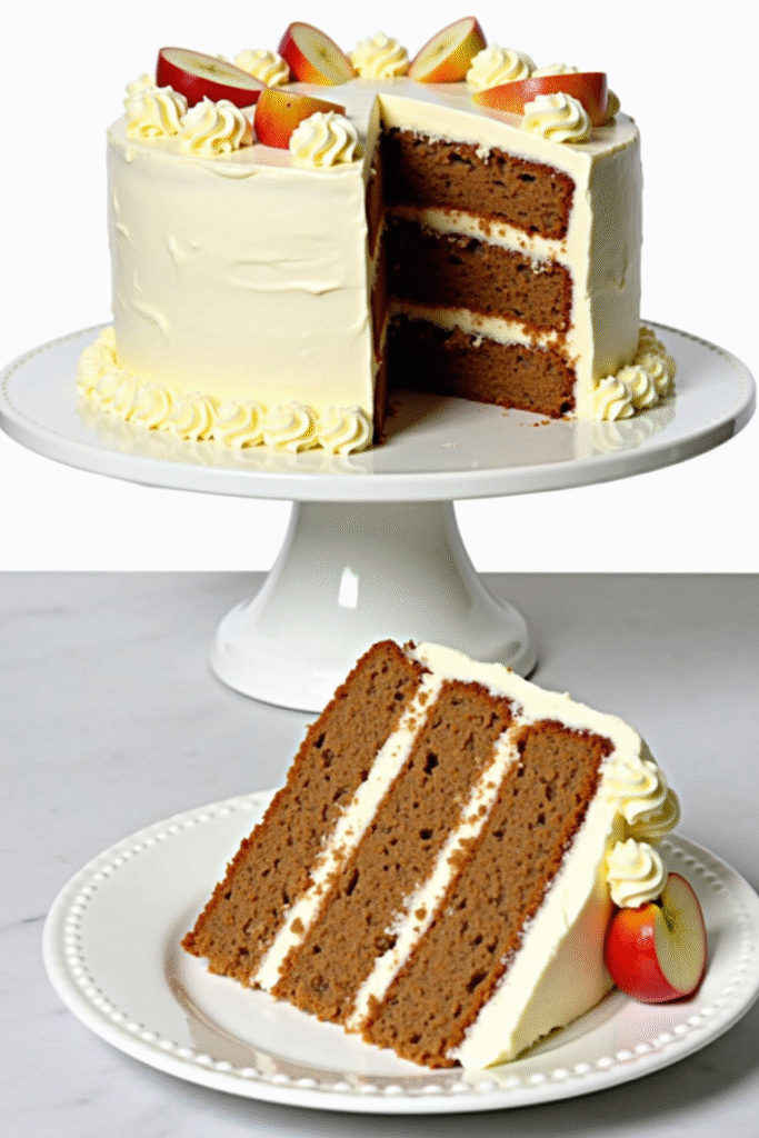 This recipe makes one 9-inch round double-layer cake, serving about 10 to 12. Each slice contains approximately 350-400 calories, primarily from the apples, flour, and buttercream. It’s a delicious way to celebrate special occasions or savor a sweet moment!