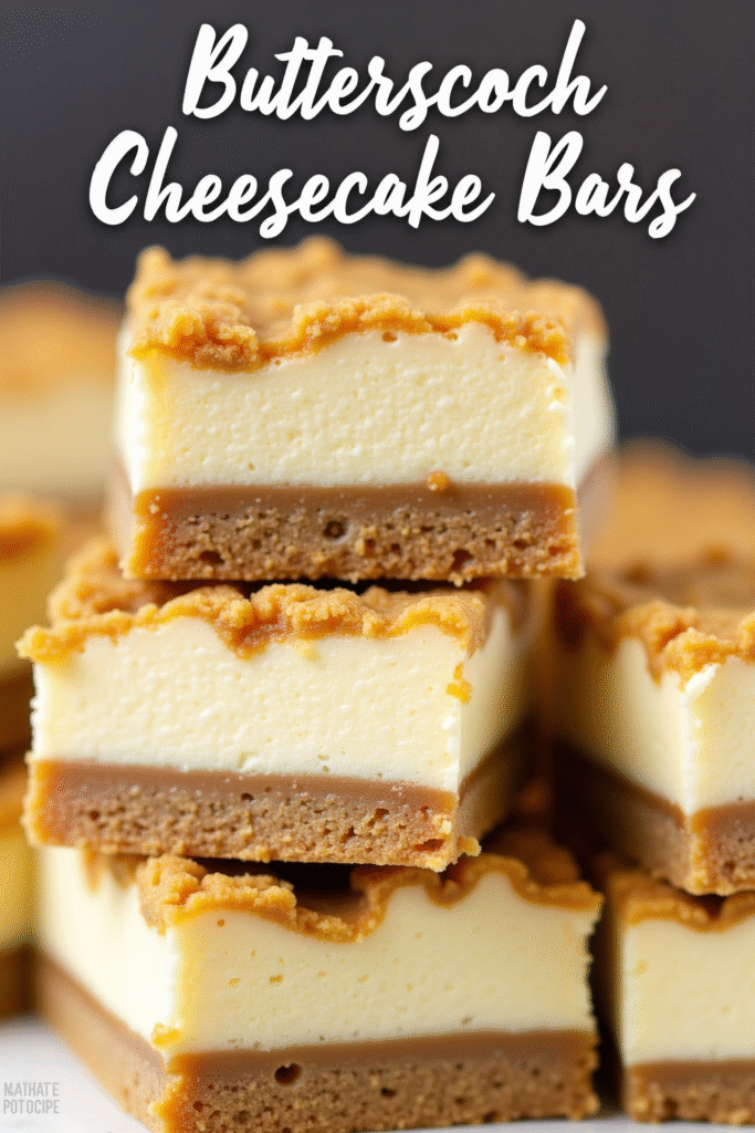 Butterscotch chips, gently melted with a splash of cream, create a glossy, rich topping that’s poured over the baked and cooled cheesecake layer. This final flourish adds warmth, sweetness, and an eye-catching finish to every bite.