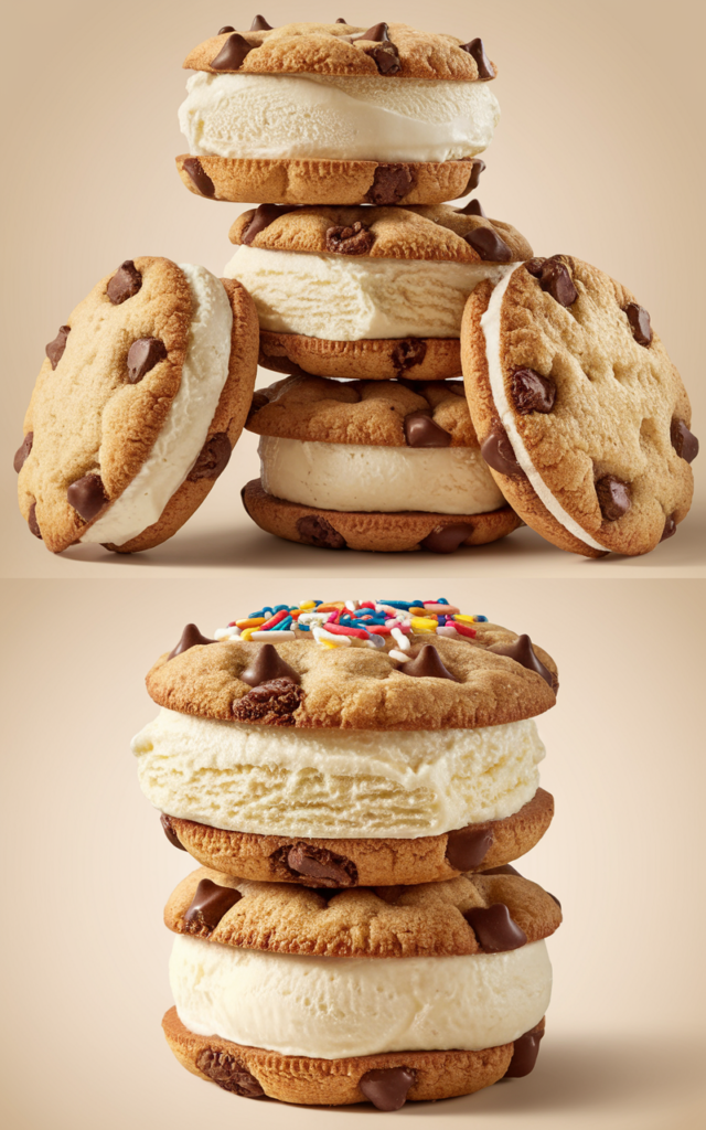 This recipe stands out by combining warm, chewy cookies with a luxuriously smooth ice cream center. The balance of sweetness and the interplay between the slightly crisp cookie edges and the cool, creamy filling create a dessert that’s as pleasing to the eye as it is to the palate.