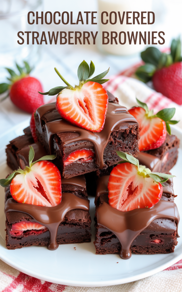 Chocolate Covered Strawberry Brownies combine two iconic desserts in one irresistible treat. The vibrant burst of fresh strawberries layered atop fudgy brownies, all encased in a glossy chocolate shell, offers a symphony of flavors and textures. If you want to wow guests or indulge in something extra-special, this recipe delivers romance, nostalgia, and chocolate-dipped decadence in every bite.