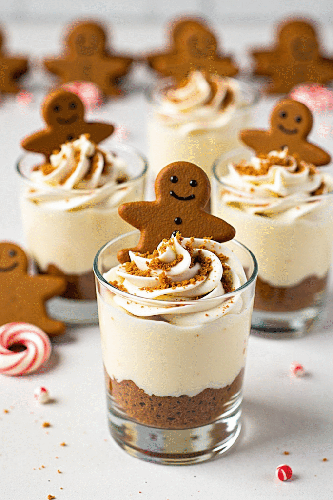 Start by pressing a mixture of crushed gingerbread cookies and melted butter into individual serving cups to form a sturdy base. Pipe or spoon the spiced cheesecake mixture on top, then refrigerate until set. Finish with a sprinkle of extra cookie crumbs or a dollop of whipped cream for an elegant, festive touch—no baking, no fuss!