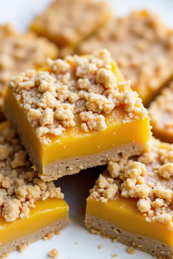 A classic shortbread mixture serves double duty in this recipe—first pressed as a sturdy yet tender base, then crumbled across the top for a golden, crumbly finish. As everything bakes, the peachy filling bubbles up between the layers, infusing the whole bar with that quintessential summer aroma.