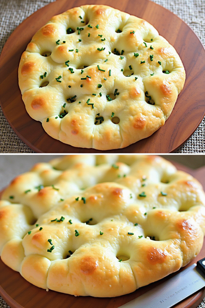 Quick to make and packed with savory, cheesy flavors, this focaccia is sure to become a household favorite. Its soft interior and crisp, aromatic crust make it an instant crowd pleaser.