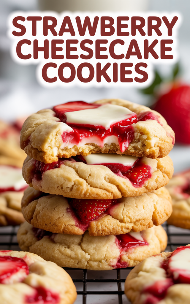 With tangy cream cheese, sweet strawberry bursts, and a buttery cookie base, these Strawberry Cheesecake Cookies are a crowd-pleaser for any occasion. They’re easy to make, beautiful to serve, and deliciously reminiscent of classic cheesecake in every bite.