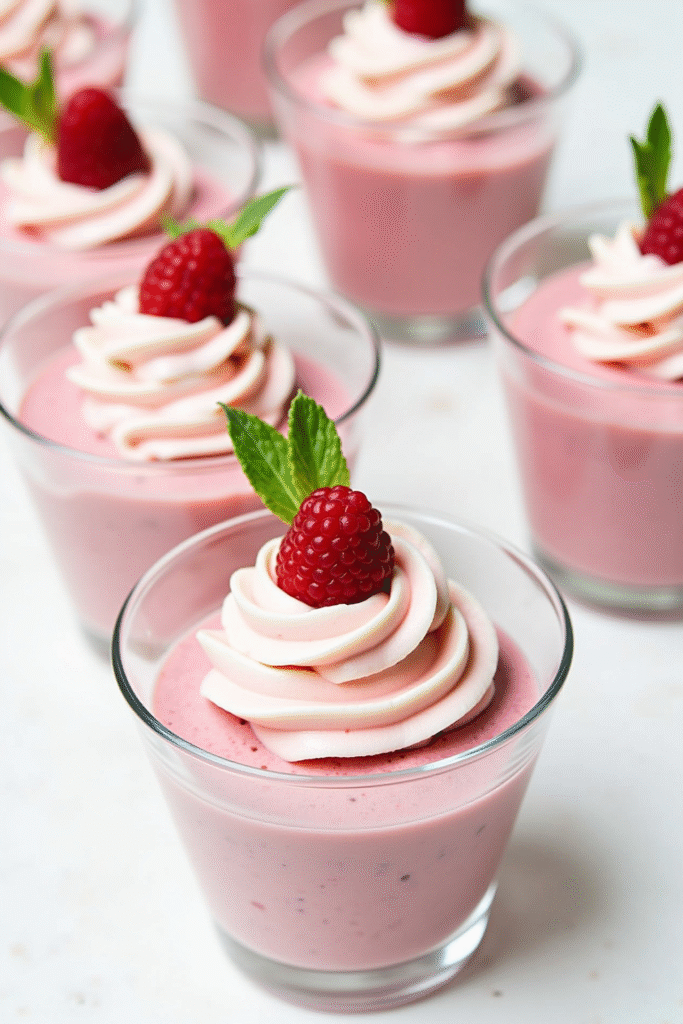 Serve your mousse in clear glass cups or stemmed dessert glasses for an elegant presentation that highlights its rosy hue. For an extra flourish, layer fresh berries or raspberry coulis between mousse layers, and finish with a dollop of whipped cream or a few mint leaves for a fresh color pop.
