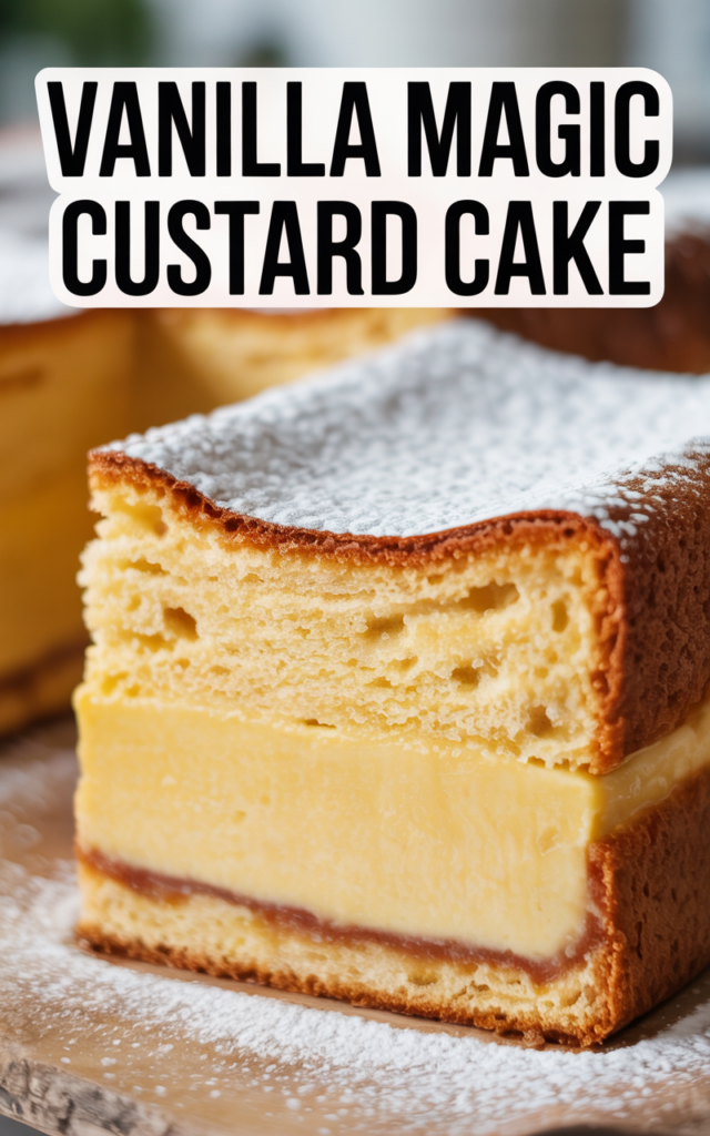 Vanilla Magic Custard Cake delivers the ultimate dessert alchemy—one simple batter transforms in the oven into three glorious layers: a fluffy sponge top, a creamy custard center, and a delicate base. It’s a show-stopping dessert that brings together elegance, nostalgia, and comfort with every bite.